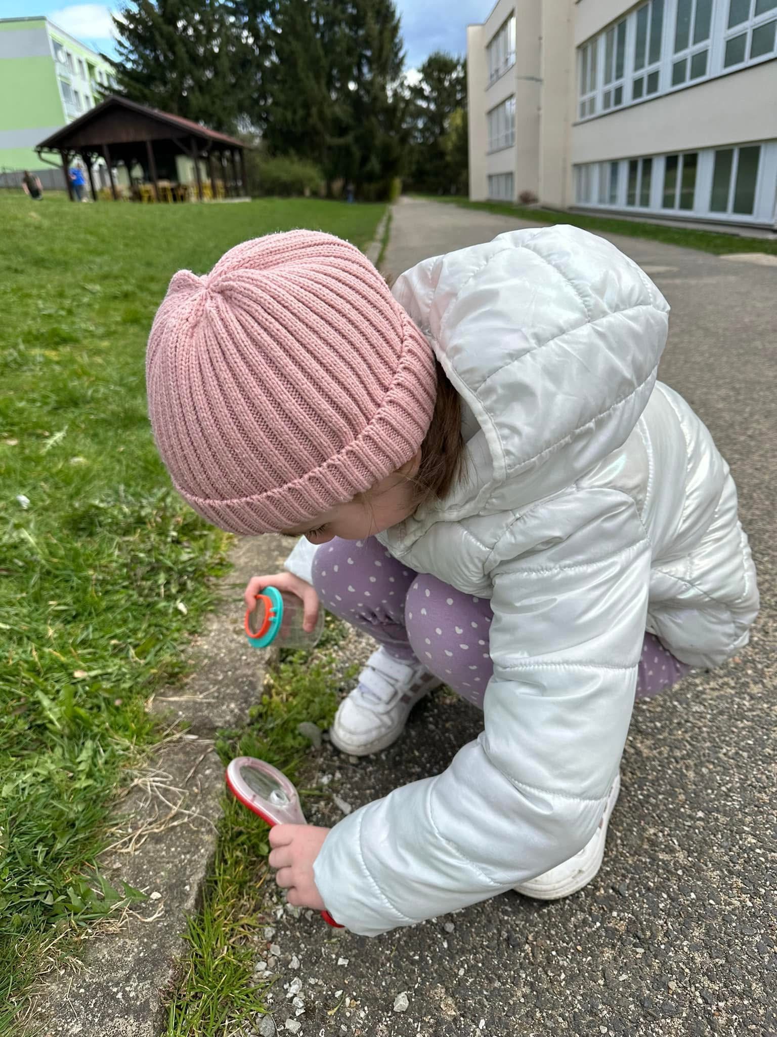 Vybavíme se kelímky s lupou, lupami a pinzetami – a vyrazíme do míst, kde to „žije“. Děti se rozprchnou mezi trávu, keře nebo k pařezům a začnou objevovat. Brzy se ozývá nadšené: „Mám mravence!“, „Tenhle má krovky!“, „Pavouček! Ale ten má víc nohou, že jo?“ A spousta dalších zvídavých otázek a nadšených výkřiků zní kolem nás.