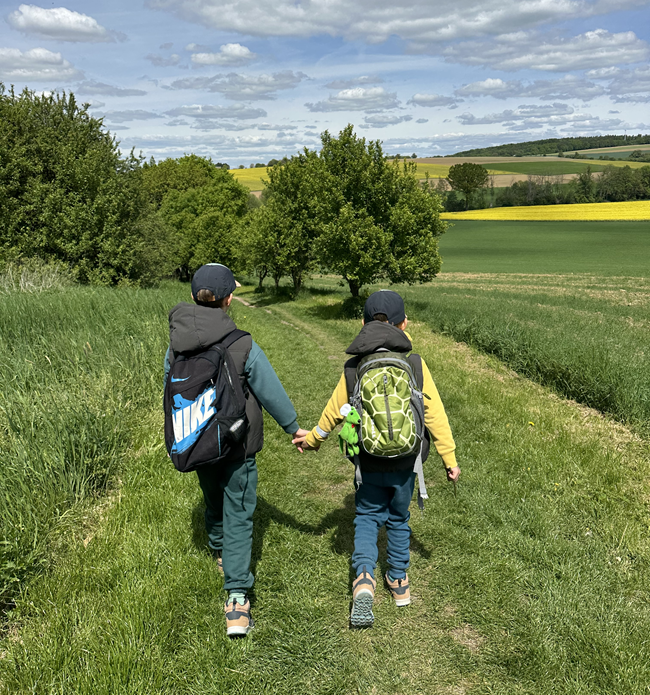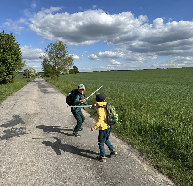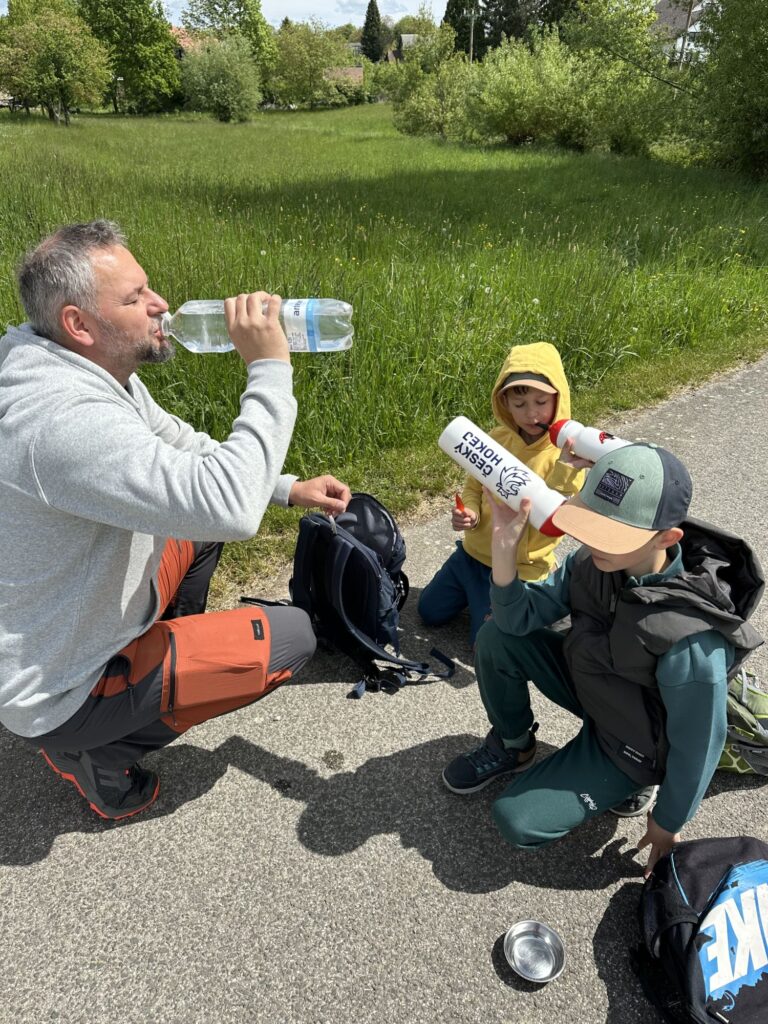 Většinou to byli oni, kdo určoval rytmus – chtěli se kochat, pozorovat brouky, hrabat se v hlíně, bojovat s klacky nebo si prostě jen tak hrát. A samozřejmě Eliáš – ten si bez zastávky na svačinu neumí představit žádný výlet. Vlastně jich potřebuje několik. 😊