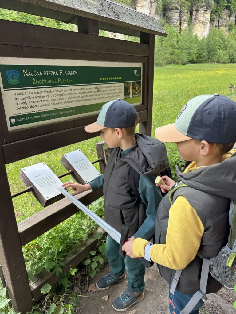Po cestě jsme narazili na několik naučných tabulí různého zaměření – o místní přírodě, historii i krajině. A to bych nebyla já, kdybych si to nechala jen pro sebe. U každé jsme se na chvíli zastavili, s klukama jsme si povídali, co už znají, co je překvapilo, a měli jsme takové malé „výukové okénko“. Občas s úsměvem říkám, že učitelka se ve mně nezapře – a tady to opět platilo.